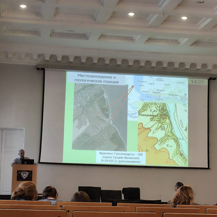 Доцент кафедры общей геологии и полезных ископаемых В.Б. Сельцер выступил на научном мероприятии с двумя докладами: «Крупный аммонит Mesopuzosia из верхнемеловых отложений Самарской области» (на секции мезозоя) и «Новые поступления в фонды отдела природы Вольского краеведческого музея (Саратовская область)» (на музейной секции).