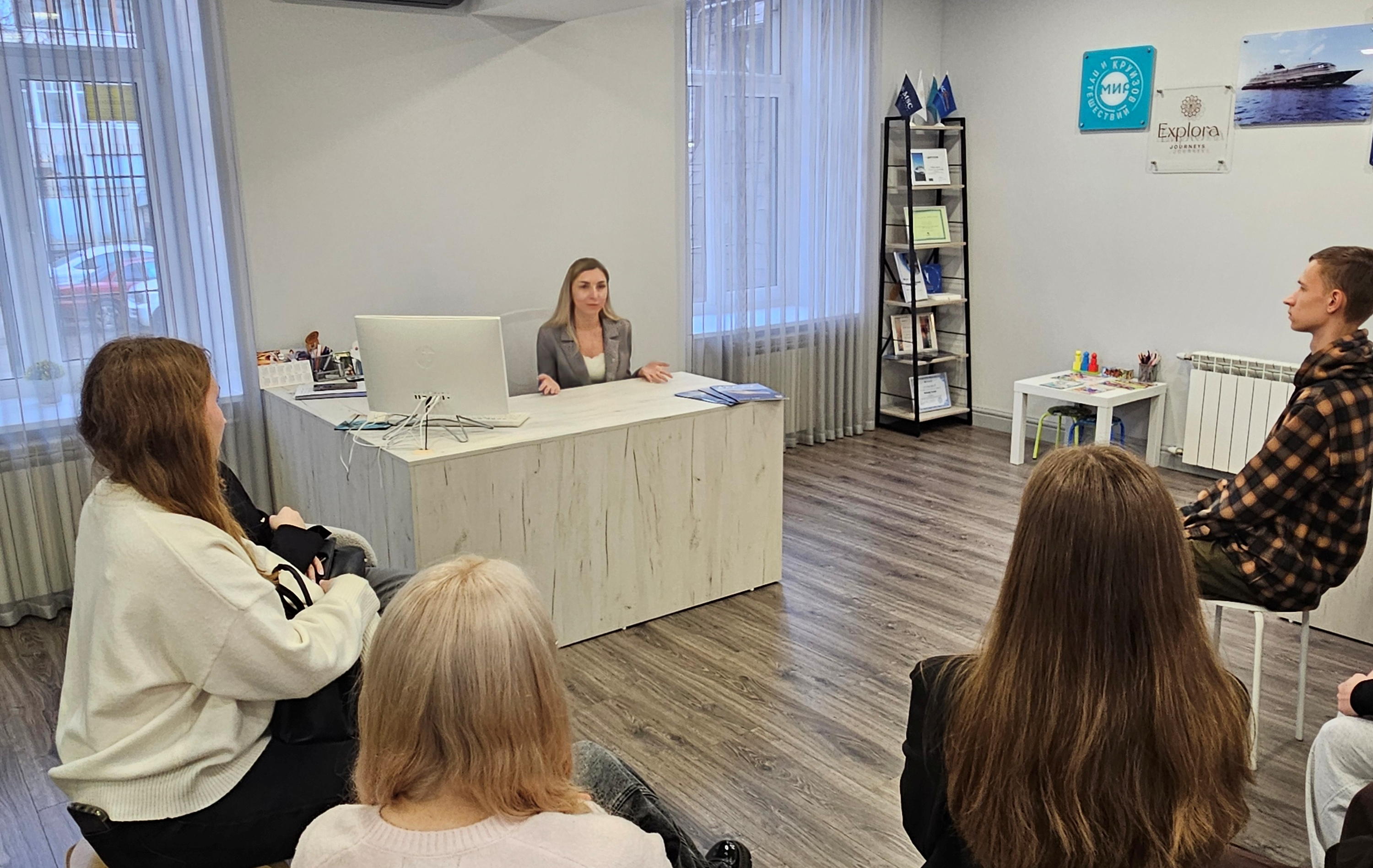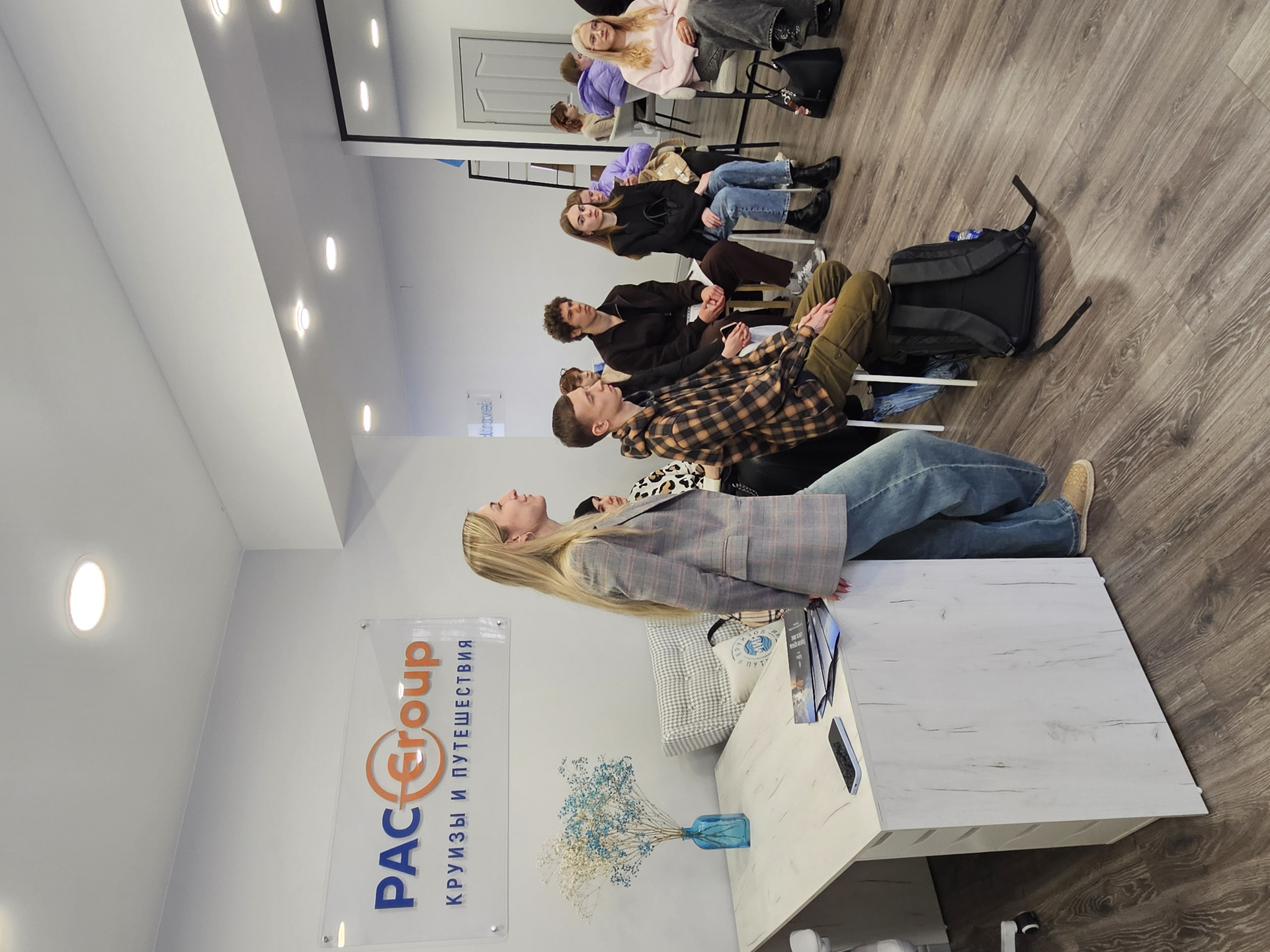 На профориентационном мероприятии «Как найти работу мечты? Поиск работы и трудоустройство в сфере туризма», которое прошло в формате беседы, обсуждался широкий круг вопросов. Студенты познакомились с историей становления компании «Coral Travel», особенностями деятельности турагентства на региональном рынке, функциональными обязанностями менеджера. Кристина Сучкова рассказала о наиболее популярных туристских направлениях 2026 г. и влиянии политических и экономических факторов на туристский бизнес. Для студентов было важно понять, в чем заключается ежедневная работа турагента: как он взаимодействует с потребителем, как оказывает помощь туристам в различных ситуациях, какие эффективные формы сотрудничества с партнерами использует. Особое внимание Кристина обратила на компетенции и профессиональные качества, которыми должен обладать менеджер по продажам, а также на необходимость постоянного совершенствования своих умений и навыков.