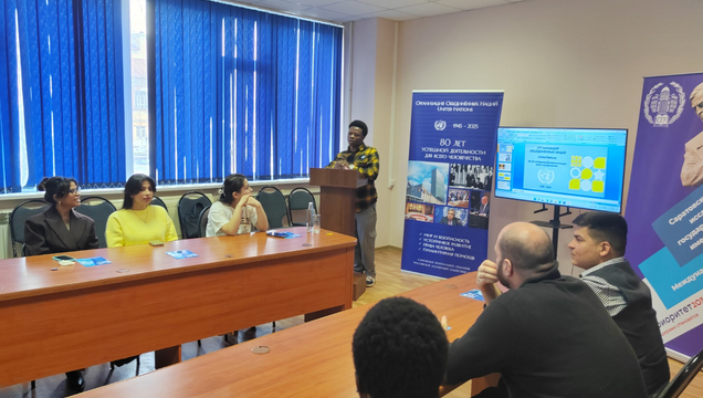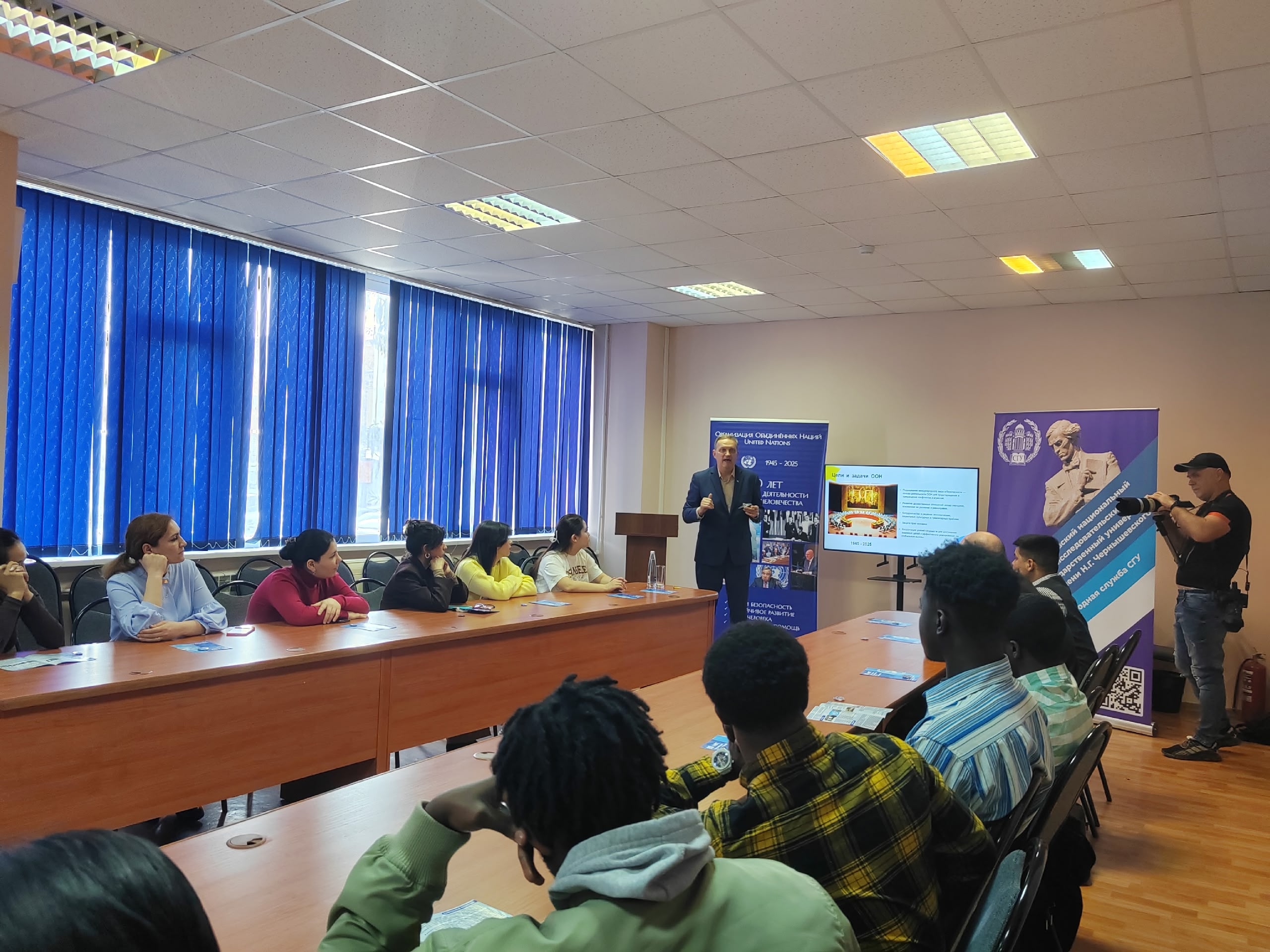 В преддверии старта ежегодной модели ООН состоялась лекция-презентация для иностранных студентов «80 лет ООН». В роли лектора выступил член Попечительского совета СГУ, председатель Саратовского регионального отделения Российской ассоциации содействия ООН, директор АНО "ИРСЭПИ" - Шашко Владимир Александрович. В ходе лекции было подробно рассказано об истории создания ООН и работе каждого комитета. Особенное внимание лектор уделил идеям всеобщего равенства и роли вечных общечеловеческих ценностей в современной жизни .