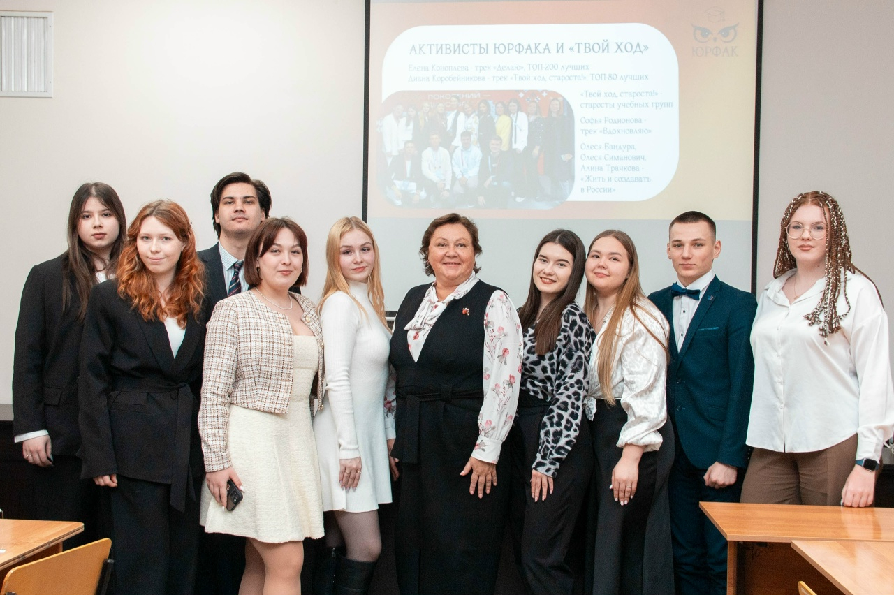 22 декабря 2025 года на юридическом факультете состоялось торжественное собрание студентов с деканом юридического факультета, доктором юридических наук, профессором, Заслуженным юристом Российской Федерации - Галиной Николаевной Комковой. Она открыла встречу приветственной речью и обратилась к собравшимся с теплыми словами благодарности.