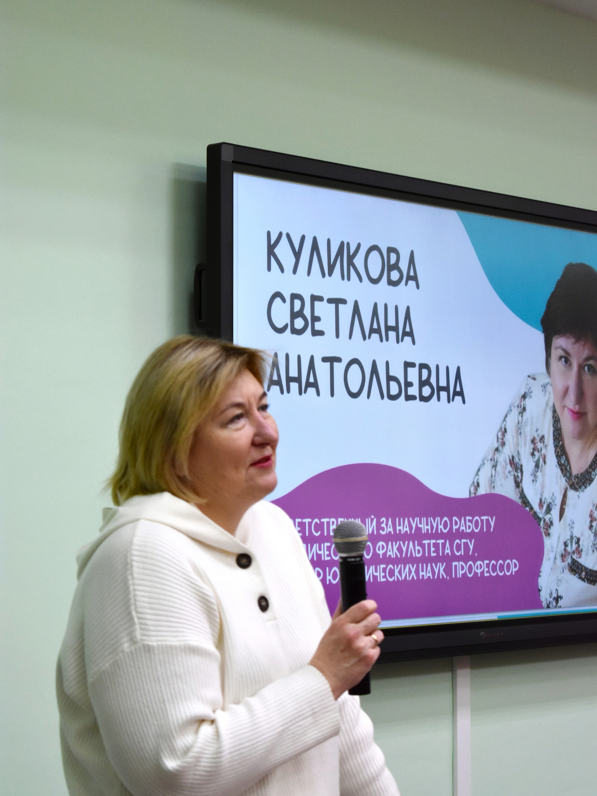 С приветствиями к участникам фестиваля обратились ответственный за научную работу на юридическом факультете, доктор юридических наук, профессор С.А.Куликова, шеф-редактор отдела информации ГТРК «Саратов» А.Г. Головчинская, заведующая кафедрой социальных коммуникаций, доктор социологических наук, профессор О.Ю. Голуб.