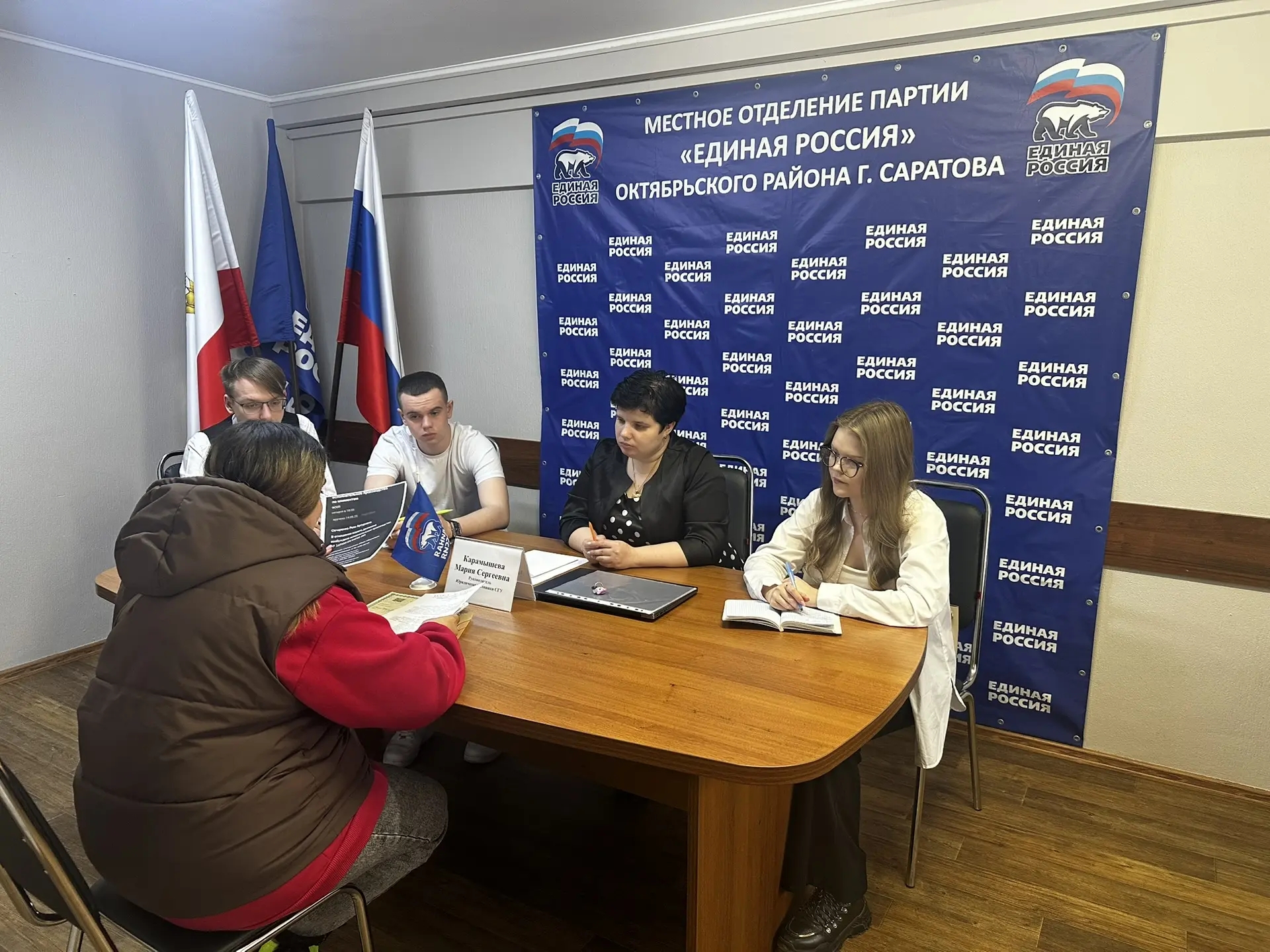 27.03.2026 г. юридическая клиника СГУ приняла участие в проведении приема граждан в целях оказания им бесплатной правовой помощи. Мероприятие было организовано и реализовано совместно  с  Общественной приемной  местного отделения партии "Единая Россия" в Октябрьском районе г. Саратова. В мероприятии приняли участие стажеры юридической клиники СГУ - Иванова Ксения, Муренко Сергей и Сарафанников Константин совместно с руководителем юридической клиники СГУ- Карамышевой Марией Сергеевной.