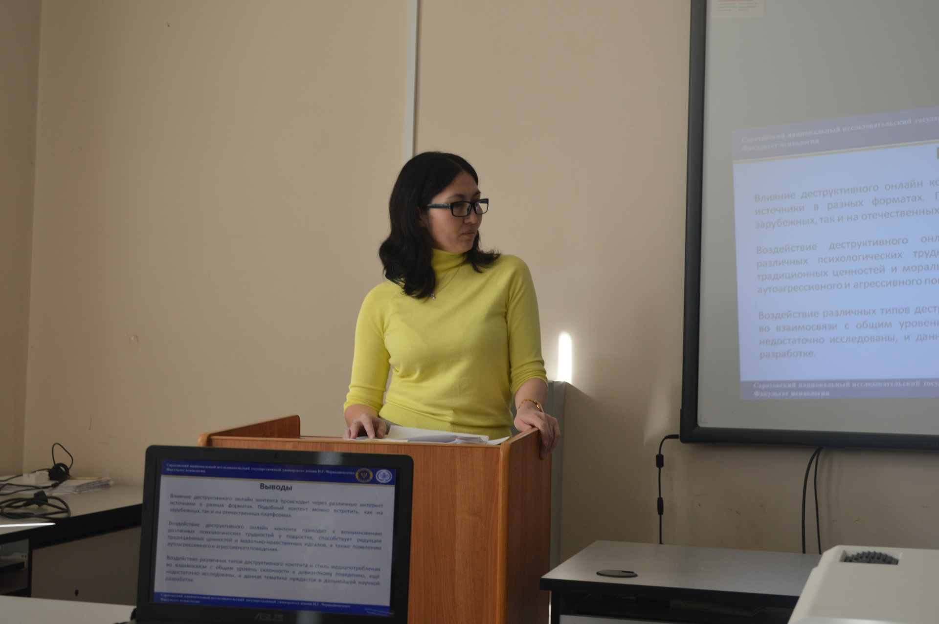 Темы докладов были посвящены актуальным проблемам юридической психологии. Особый интерес и активное обсуждение среди присутствующих вызвали темы, связанные с феноменами девиантного поведения в медиапространстве, рисками формирования аддиктивного поведения личности, а также психологическими проблемами сотрудников правоохранительных органов.