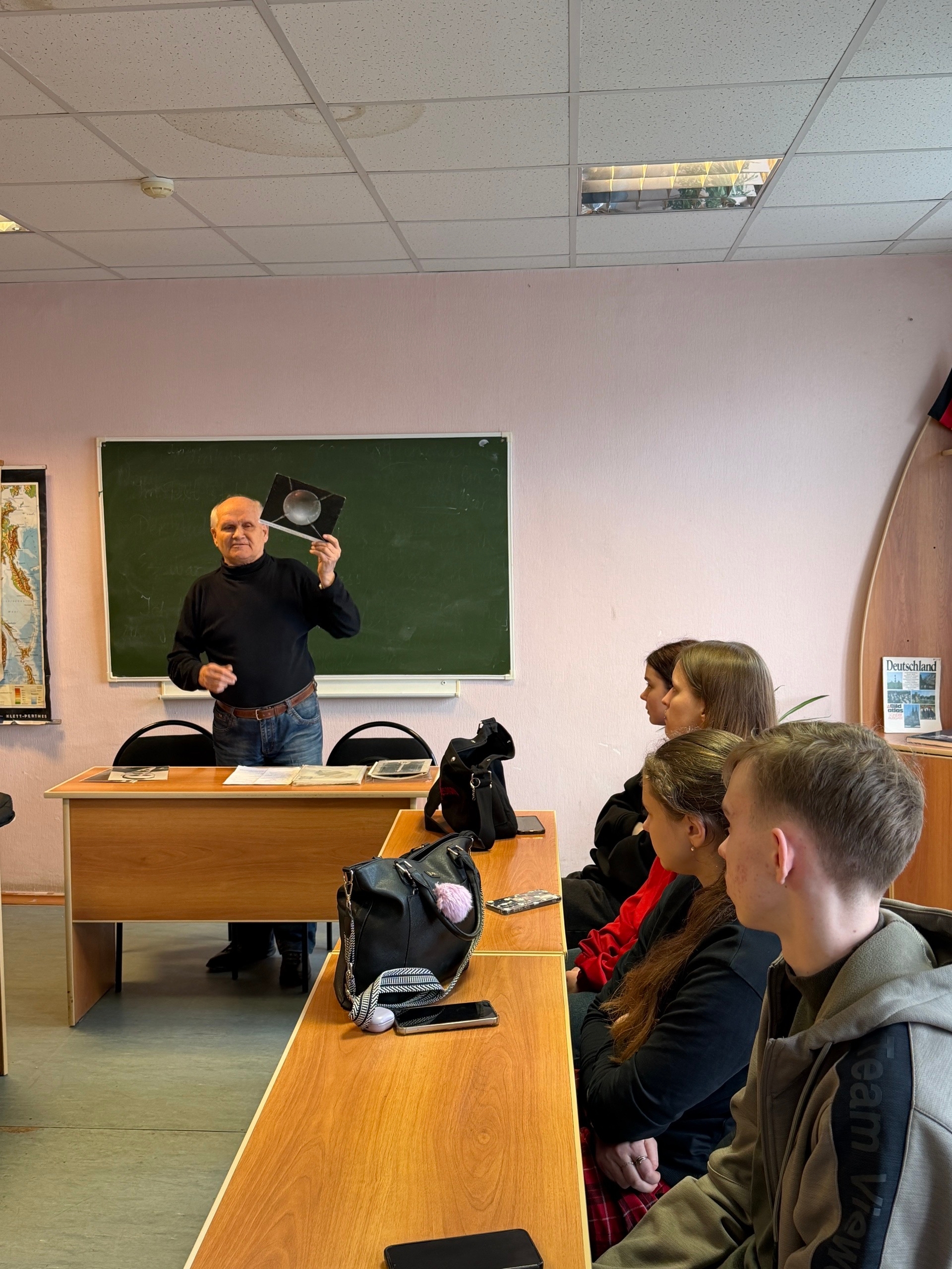 8 апреля на кафедре немецкого языка и межкультурной коммуникации факультета гуманитарных дисциплин, русского и иностранных языков Педагогического института прошло мероприятие в рамках Недели космоса, утвержденной Указом Президента Российской Федерации. В 2026 году Неделя космоса приурочена к 65-летию полета Юрия Гагарина в космос. Студенты географического, биологического, геологического, механико-математического, юридического факультетов, факультета искусств, Института истории и международных отношений, изучающие немецкий язык, стали участниками увлекательной встречи с одним из ведущих экскурсоводов Саратовского бюро экскурсий и путешествий Левановым Юрием Михайловичем. Вместе с Юрием Михайловичем ребята совершили полет в прошлое, узнали много нового и интересного об истории космонавтики, о подготовке к первому полету человека в космос и о жизни Юрия Алексеевича Гагарина, связанной с Саратовом.