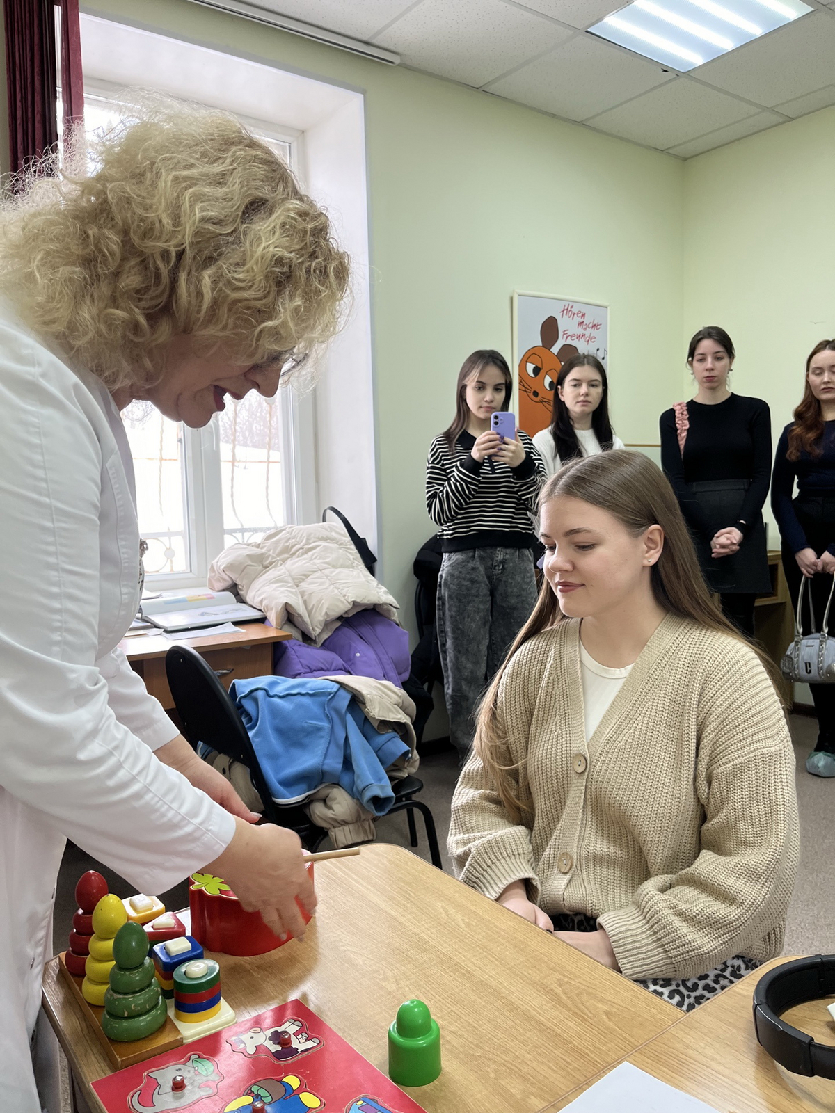 В конце занятия студенты с Ириной Альфредовной составили сводную аудиограмму своей группы. Студент – бакалавр факультета Рашидова Динара поделилась своими впечатлениями: «Огромное спасибо Ирине Альфредовне за интересный и познавательный материал. Подобные встречи с ведущими специалистами города нам важны, так как значительно расширяют наши теоретические представления о речевых нарушениях у детей и взрослых, обогащают наши компетенции в области диагностики речи и слуха».