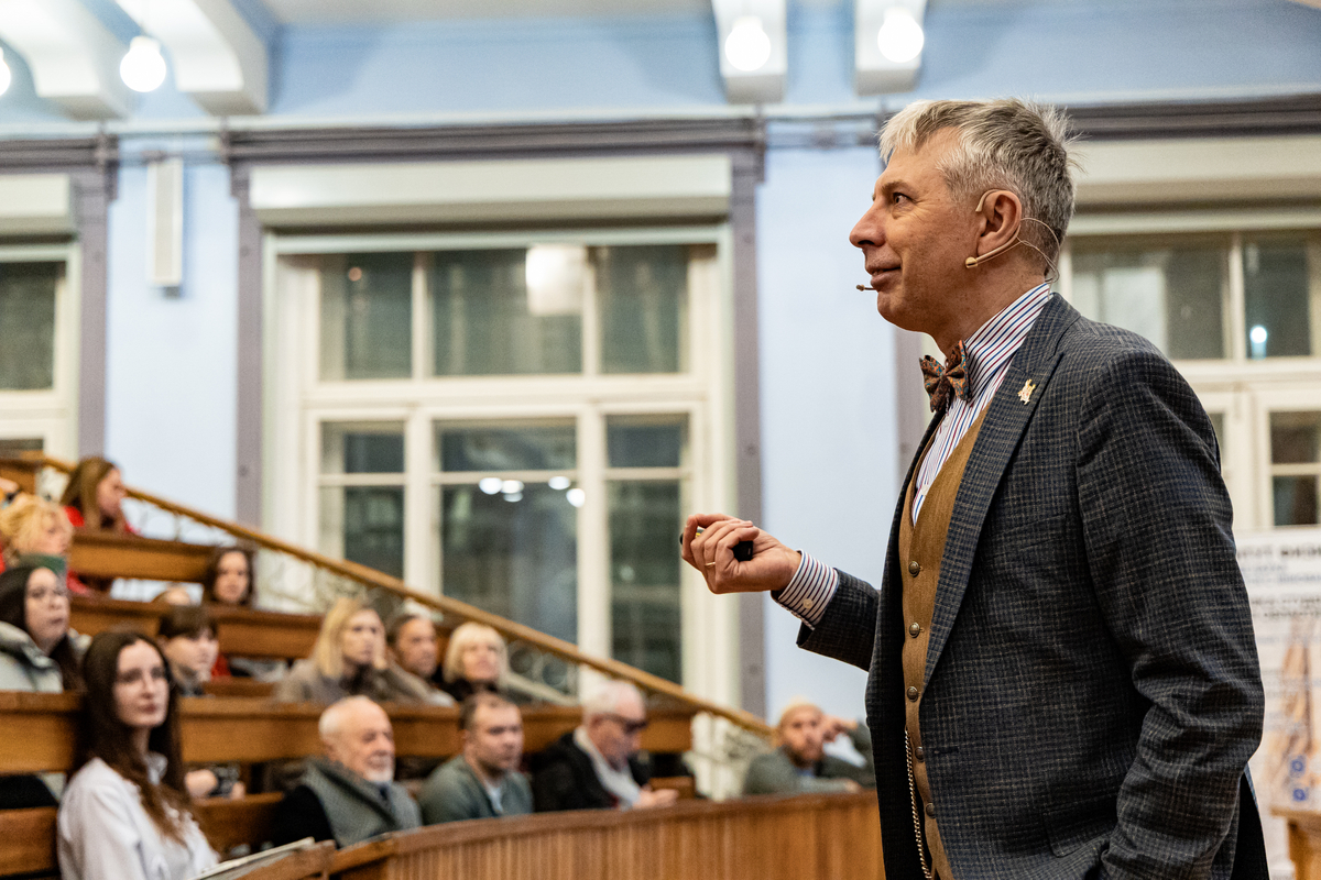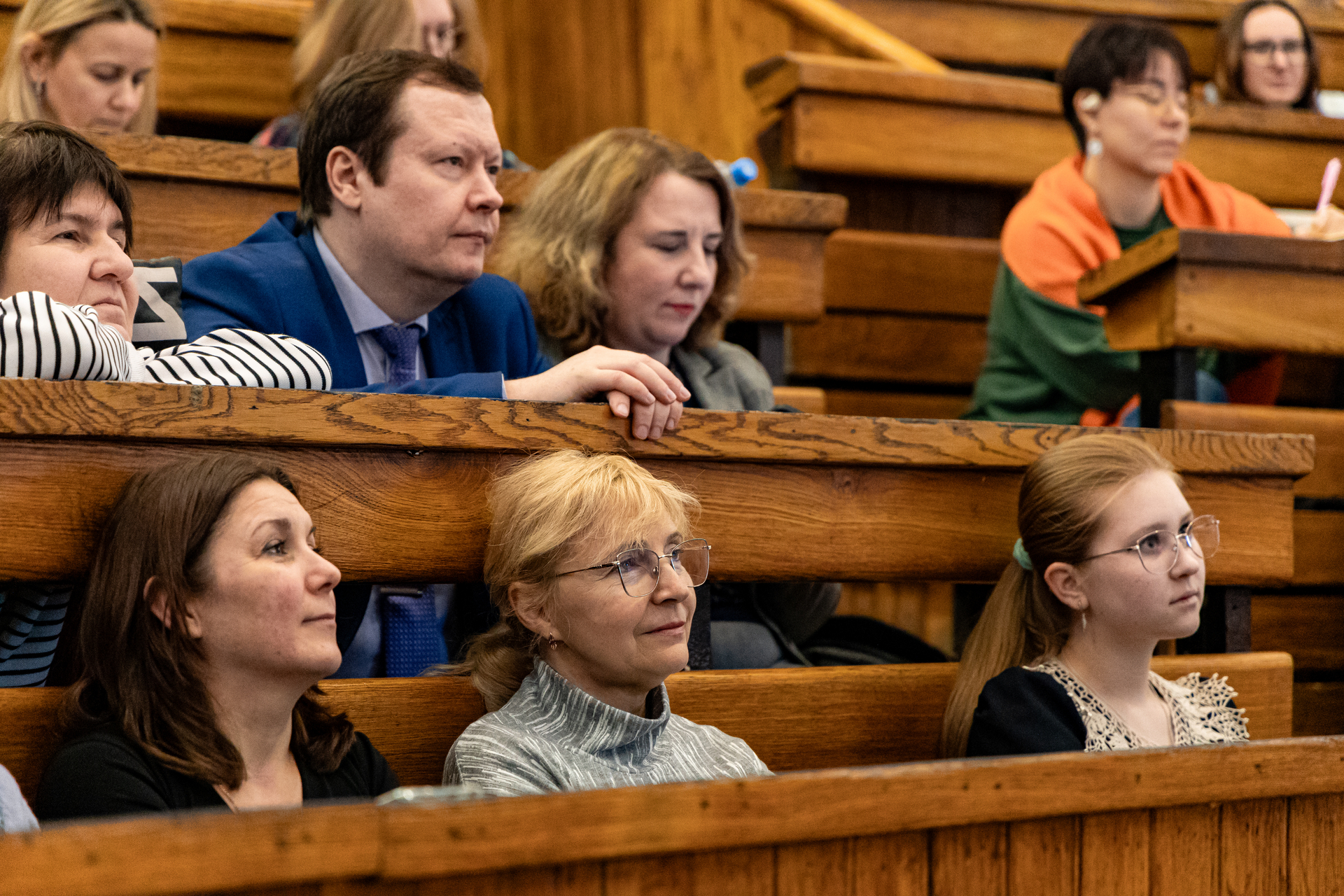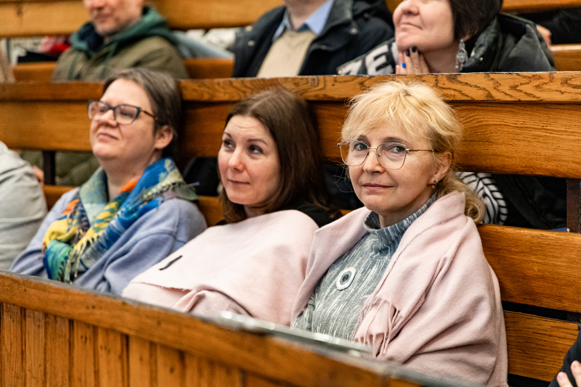 В знаменитой Большой физической аудитории СГУ рассуждали, чем мифы отличаются от сказок и почему на самом деле мы не знаем ни того, ни другого. Лекцию сопровождала игра на фортепиано в исполнении студента 4 курса Института химии Андрея Тараненко. Впервые за 115 лет в Большой физической аудитории играло пианино.
