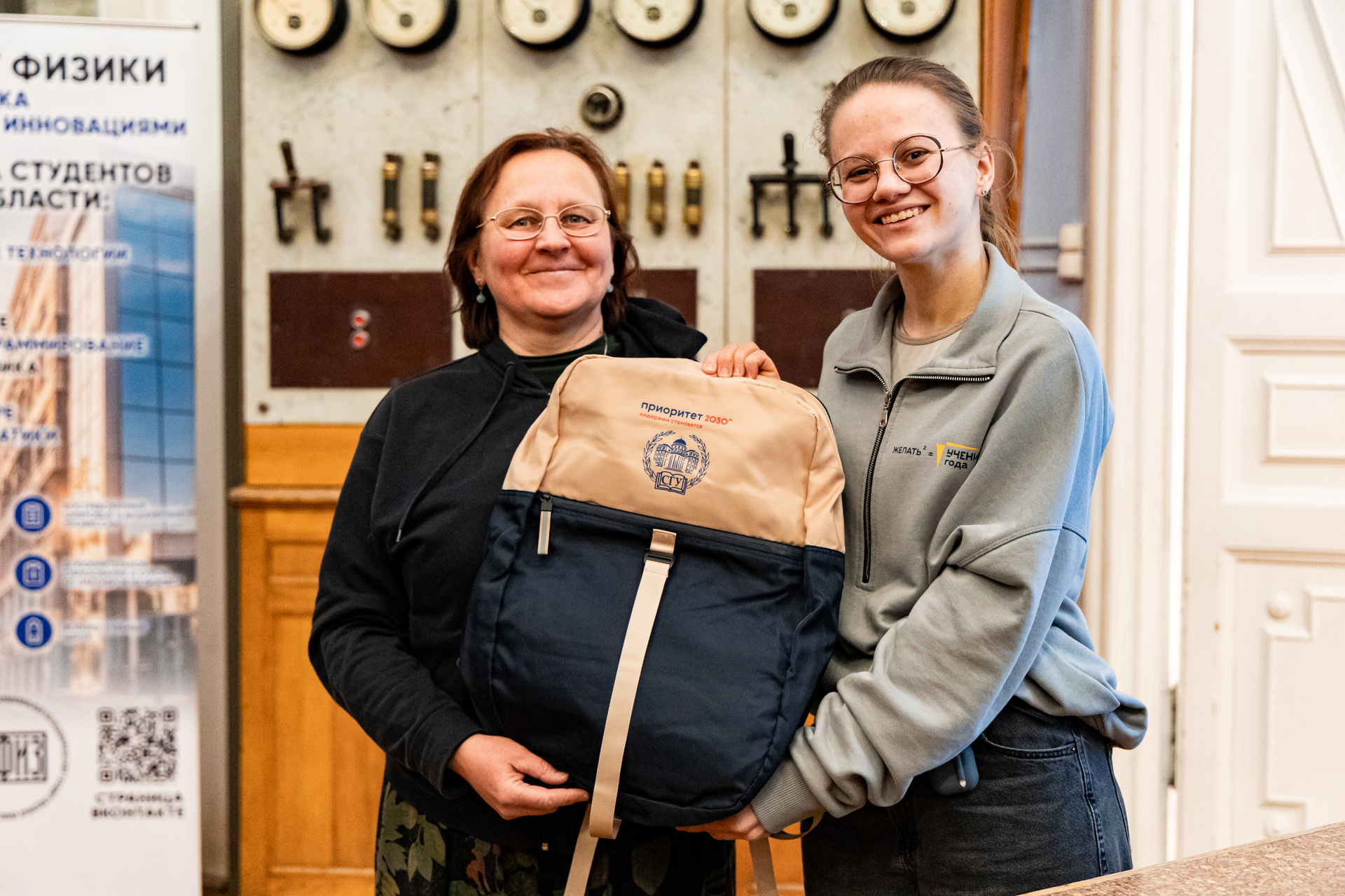 В начале встречи организаторы предложили гостям поддержать научный потенциал Института физики СГУ. К грантовой программе развития может присоединиться каждый. Пожертвования принимаются на платформе Legacy Endowment Services, а сумму каждый определяет самостоятельно. После лекции среди дарителей были разыграны подарки. Их обладателями стали студенты СГУ Максим Чибезов (Институт физики) и Владимира Королёва (ИФиЖ), а также гостья университета Анна Родина.