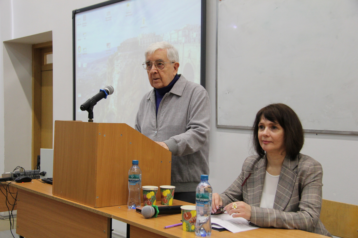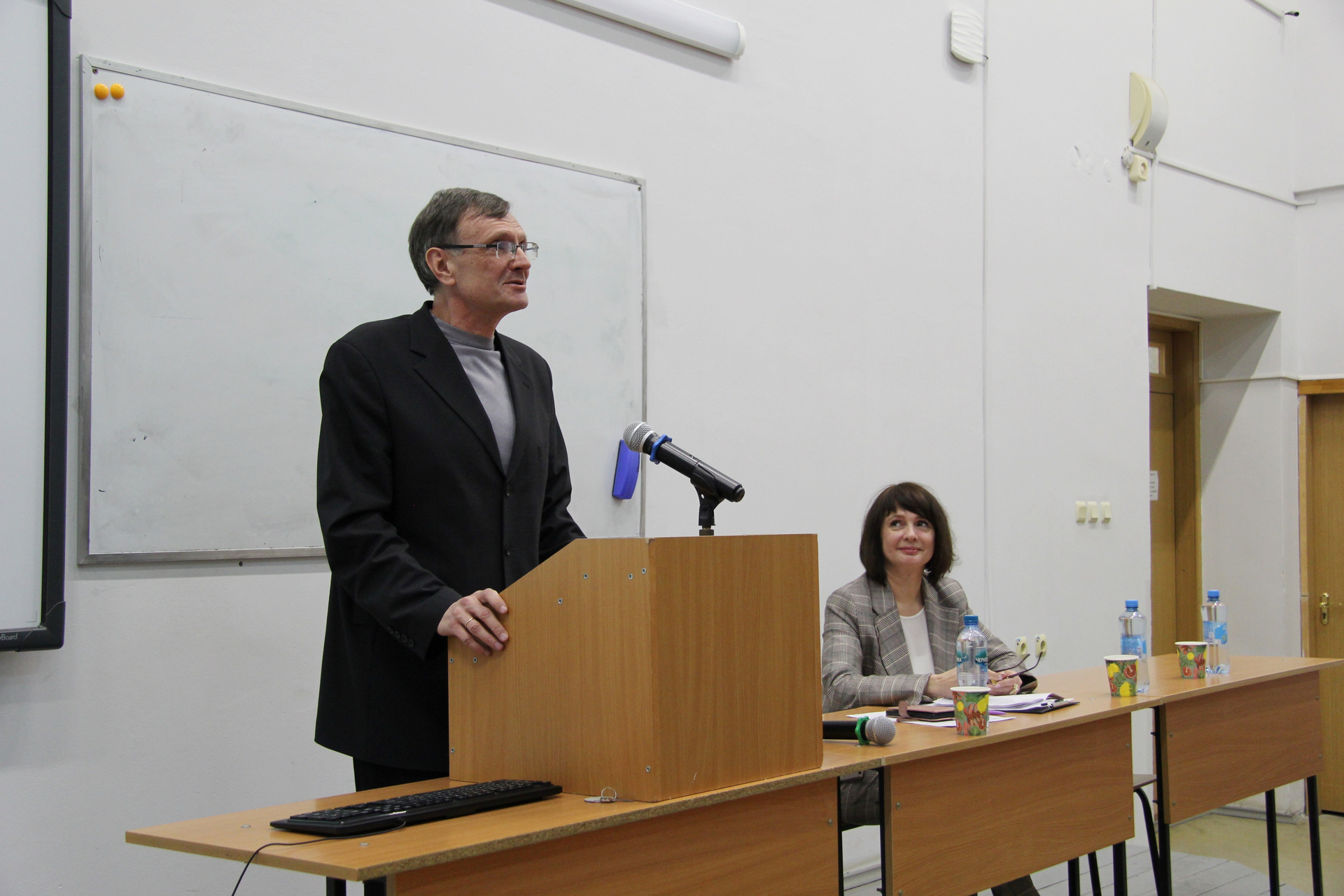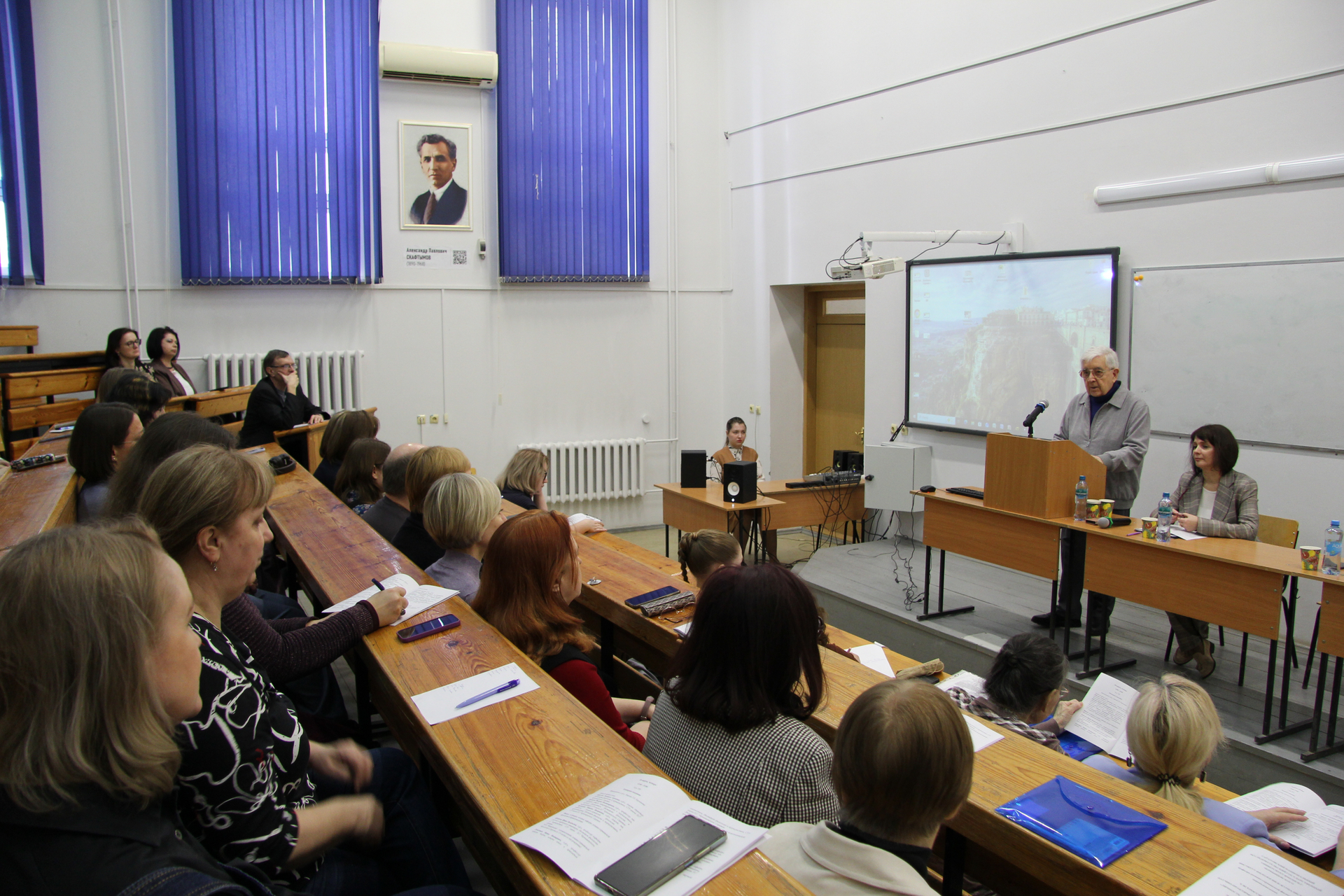 К присутствующим обратился научный руководитель Института, профессор Валерий Владимирович Прозоров. Он рассказал слушателям о разносторонних научных интересах основателя отделения романо-германской филологии в Саратовском университете.