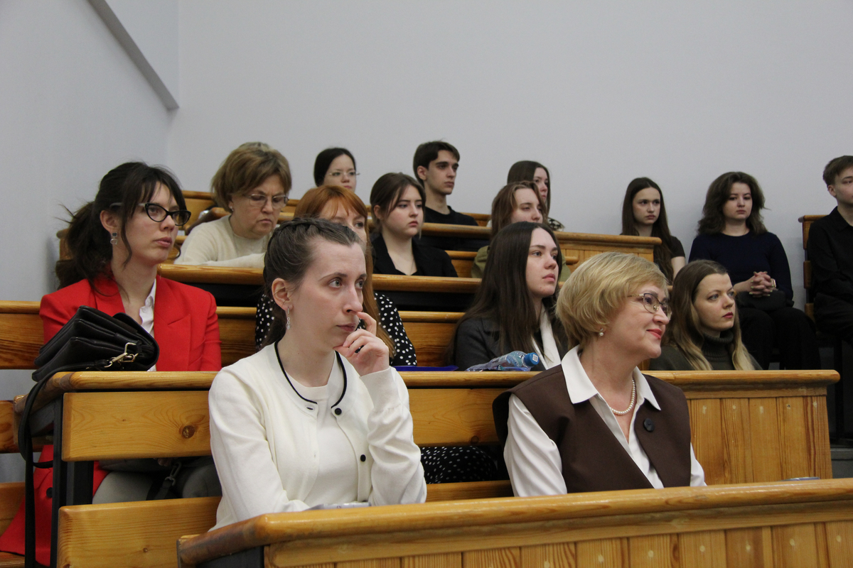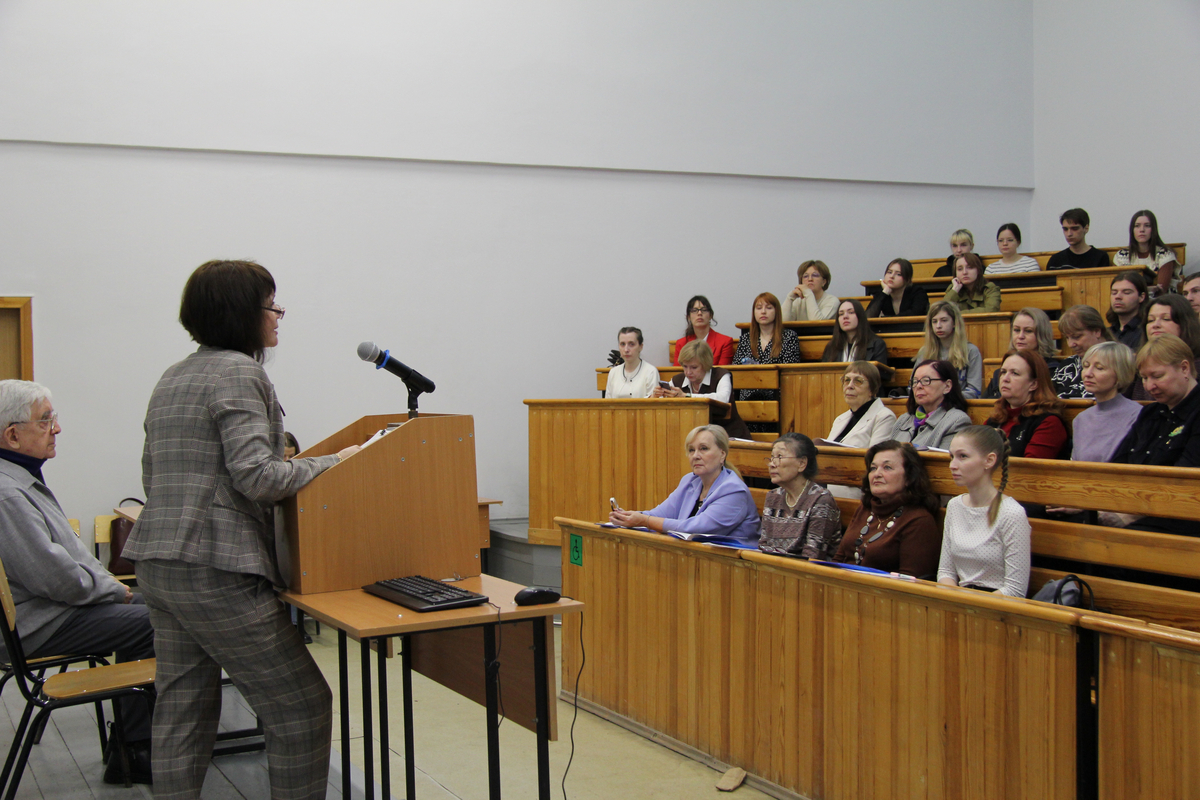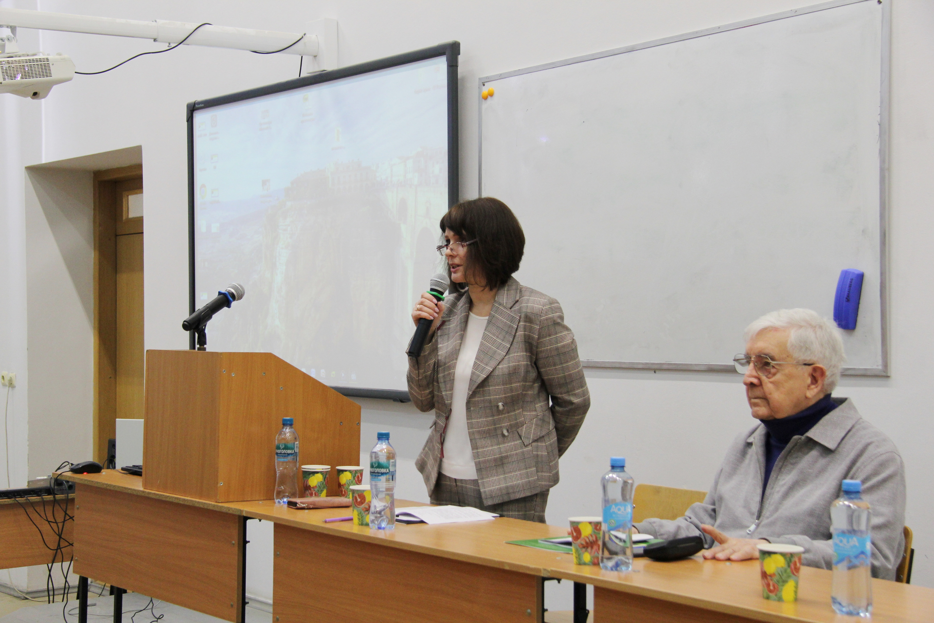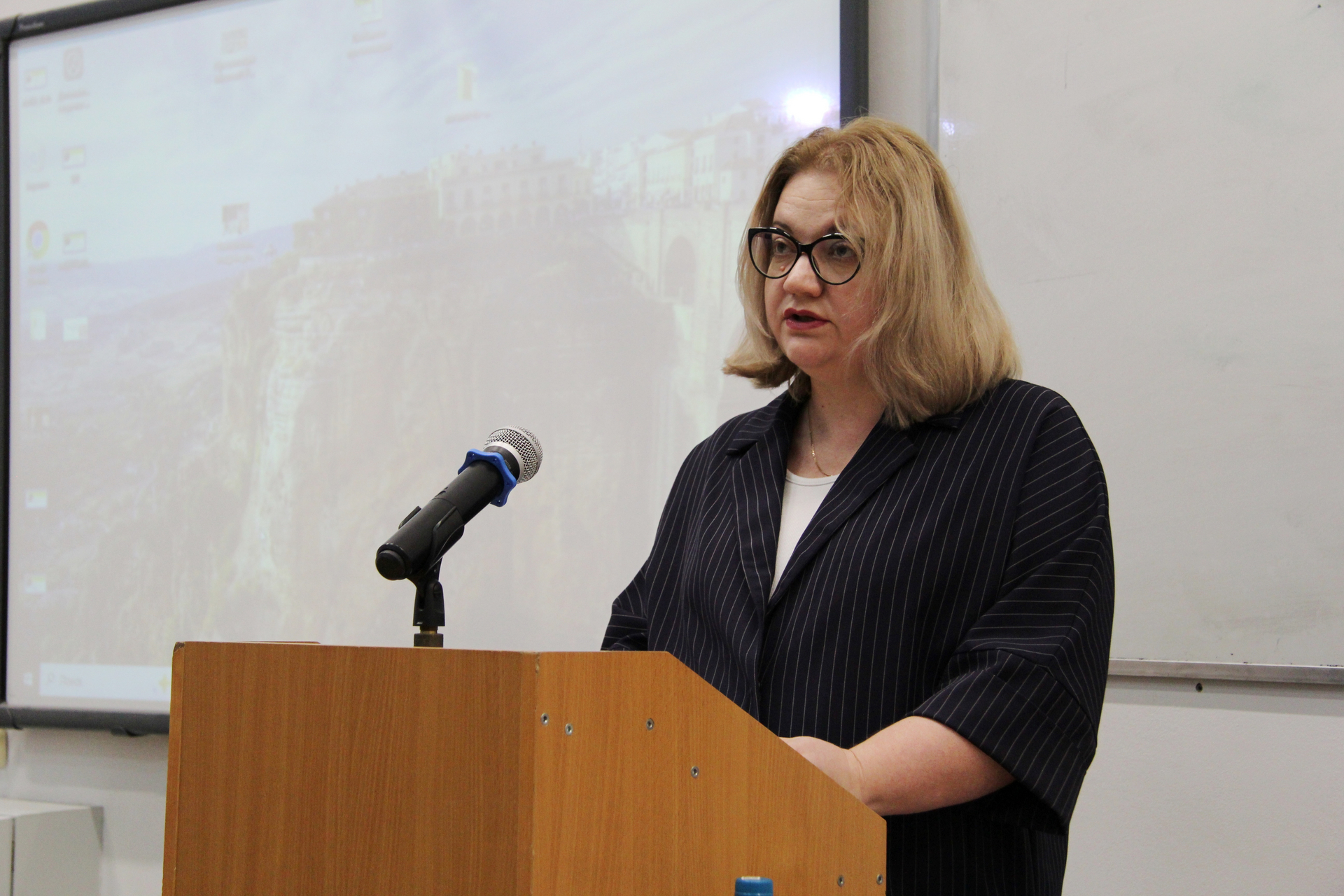 Затем слово взяла заведующая кафедрой романо-германской филологии и переводоведения, доцент Татьяна Валериевна Харламова. Она поделилась рассуждениями о преемственности научной традиции и связи прошлого с настоящим. Татьяна Валериевна подчеркнула необходимость быть в курсе современных тенденций и идти в ногу со временем.