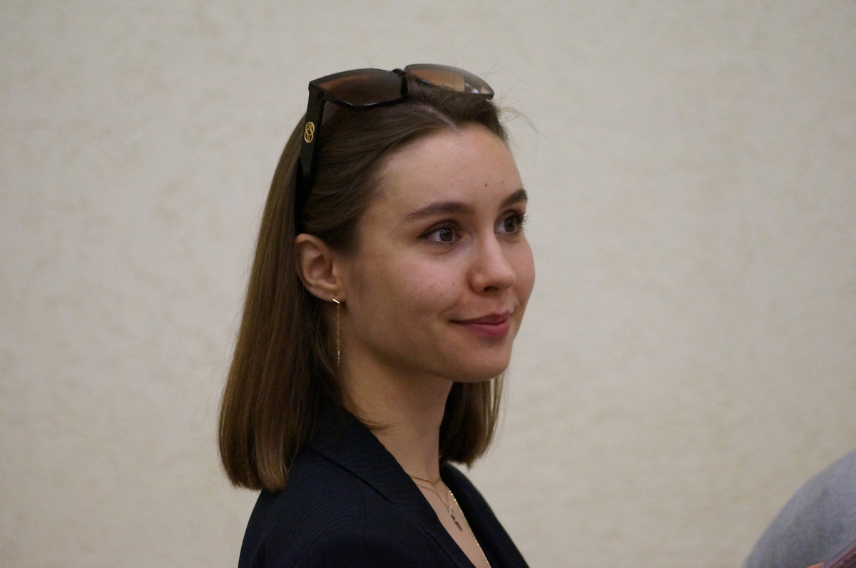 Далее слово было предоставлено ответственному за научную работу философского факультета, преподавателю кафедры философии и методологии науки Е.С. Лобановой. Екатерина Сергеевна рассказала о научном потенциале факультета, международных и всероссийских конференциях, публикационной активности обучающихся, а также пригласила старшеклассников принять участие в секции для школьников в рамках Ежегодной конференции молодых ученых. На представленных в презентации слайдах аудитория смогла увидеть самые яркие и запоминающиеся моменты научной жизни текущего и прошедшего учебного года.