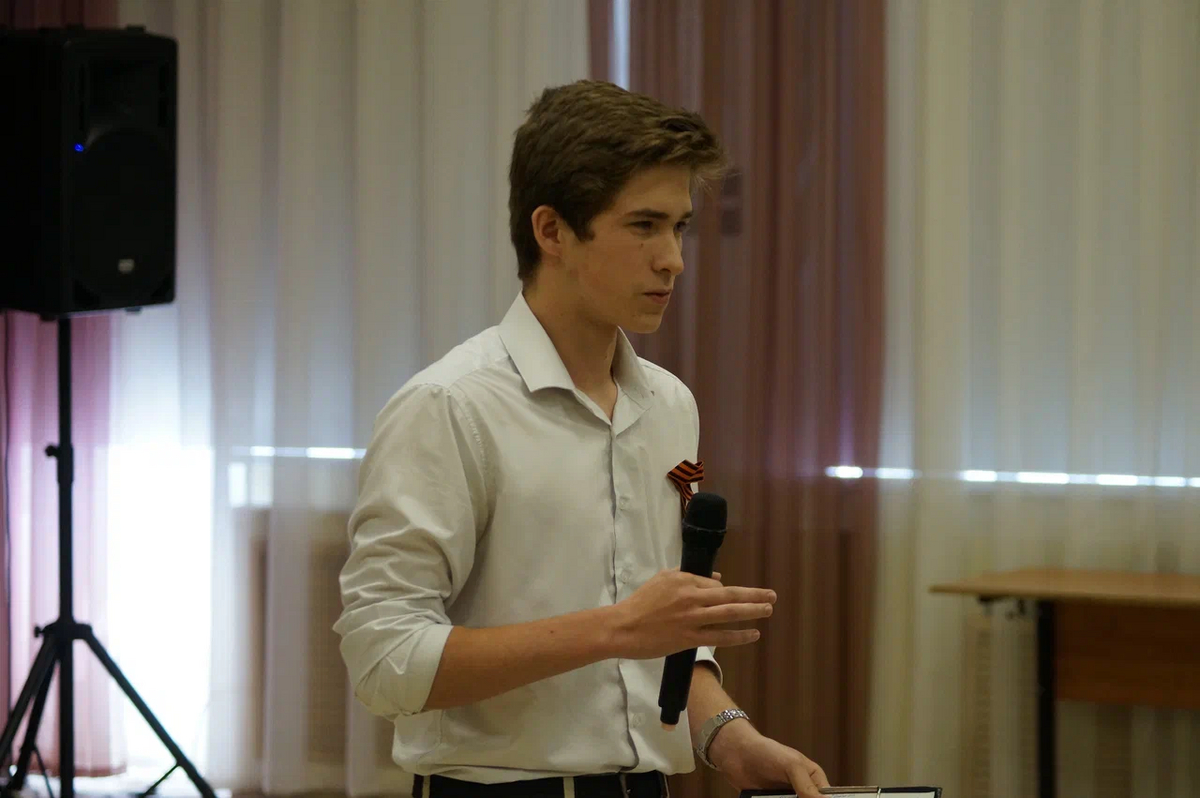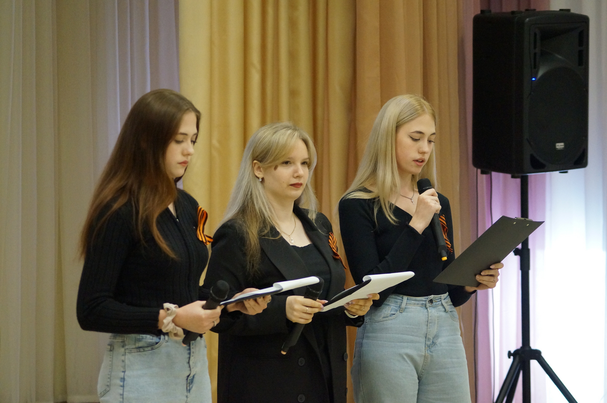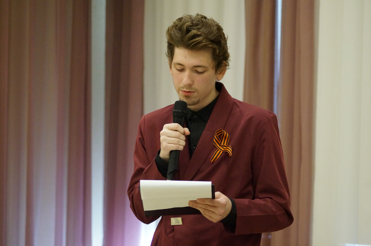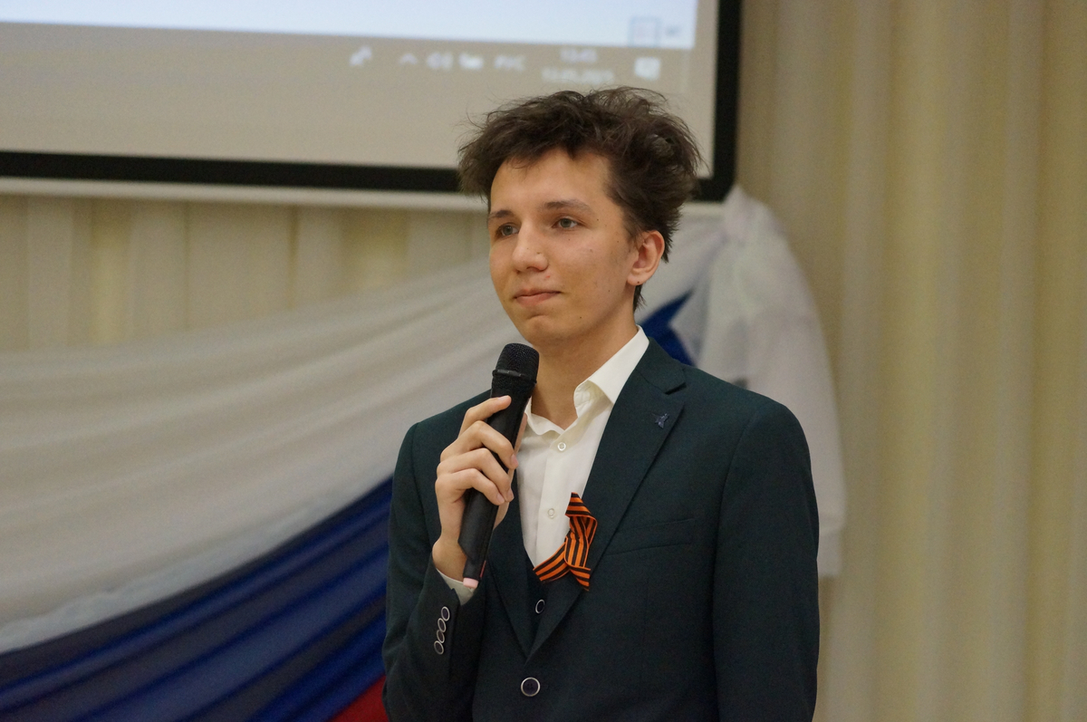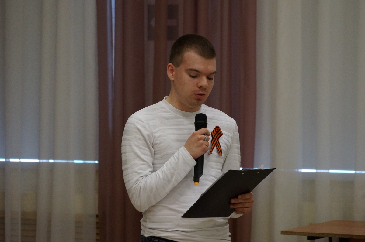 Владислав Варгин, обращаясь к сюжетам фильма «А зори здесь тихие», поделился размышлением о женском подвиге на войне, о той смелости, которые проявляли еще совсем молодые девушки, сражаясь с врагом и защищая родную землю ценой собственной жизни. Показывая кадры кинокартины «Судьба человека», Сергей Никифоров обратил внимание учащихся на мужество русского солдата перед лицом смерти, его преданность Родине, долгу, своим идеалам, на несокрушимость воли и умение сохранять лицо, честь, достоинство до конца. Техническую помощь выступающим оказывали их одногруппники Данила Назаркин и Захар Брянский
