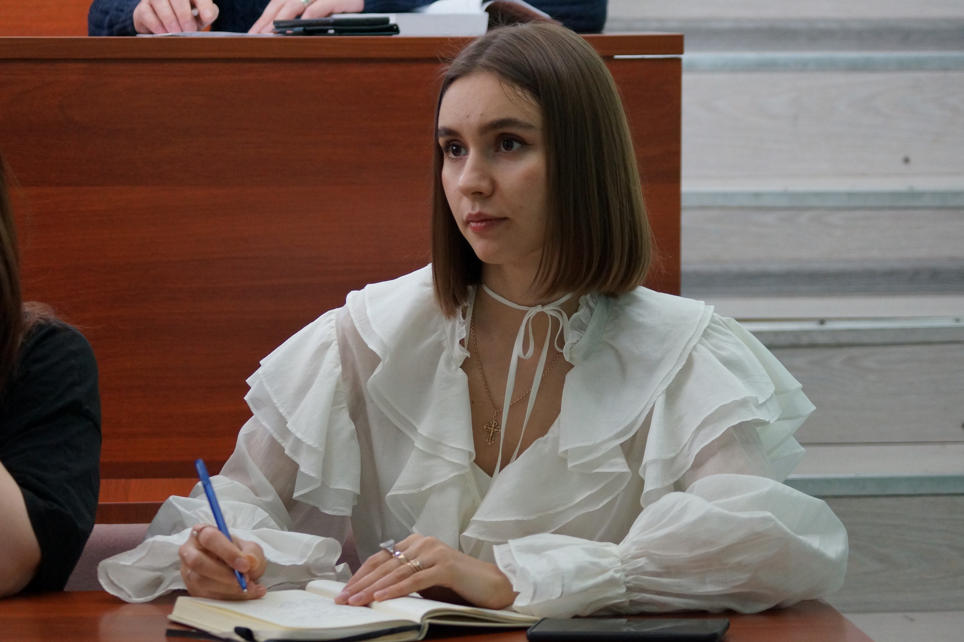 После лекции заинтересованные слушатели задавали вопросы, а затем обсуждение продолжилось на кафедре философии культуры и культурологии.