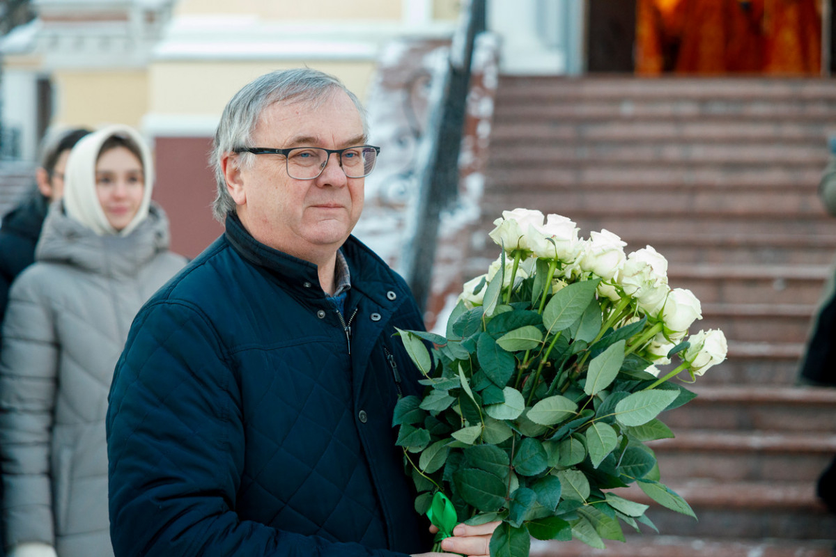 Службу посетили ректор Саратовского университета Алексей Николаевич Чумаченко, заместитель министра внутренней политики и общественных отношений Саратовской области Тимофей Иванович Лещенко, заведующие кафедрами философского факультета, а также преподаватели, сотрудники, студенты. Праздничную проповедь прочитал настоятель храма протоиерей Кирилл Краснощеков, кандидат богословия, доцент кафедры философии и методологии науки СГУ.
