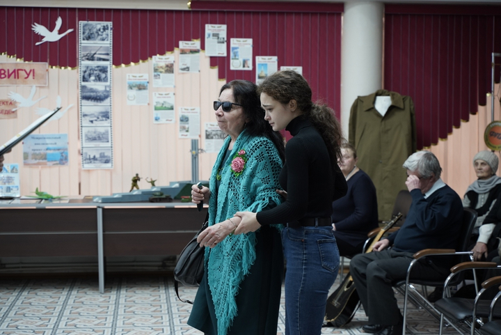 Ко Дню защитника Отечества в областной специальной библиотеке для слепых прошёл праздничный концерт. Добровольцы Регионального центра добровольчества «Абилимпикс» помогли организовать мероприятие и сопровождали незрячих читателей: встречали гостей и помогали им на протяжении всего концерта.