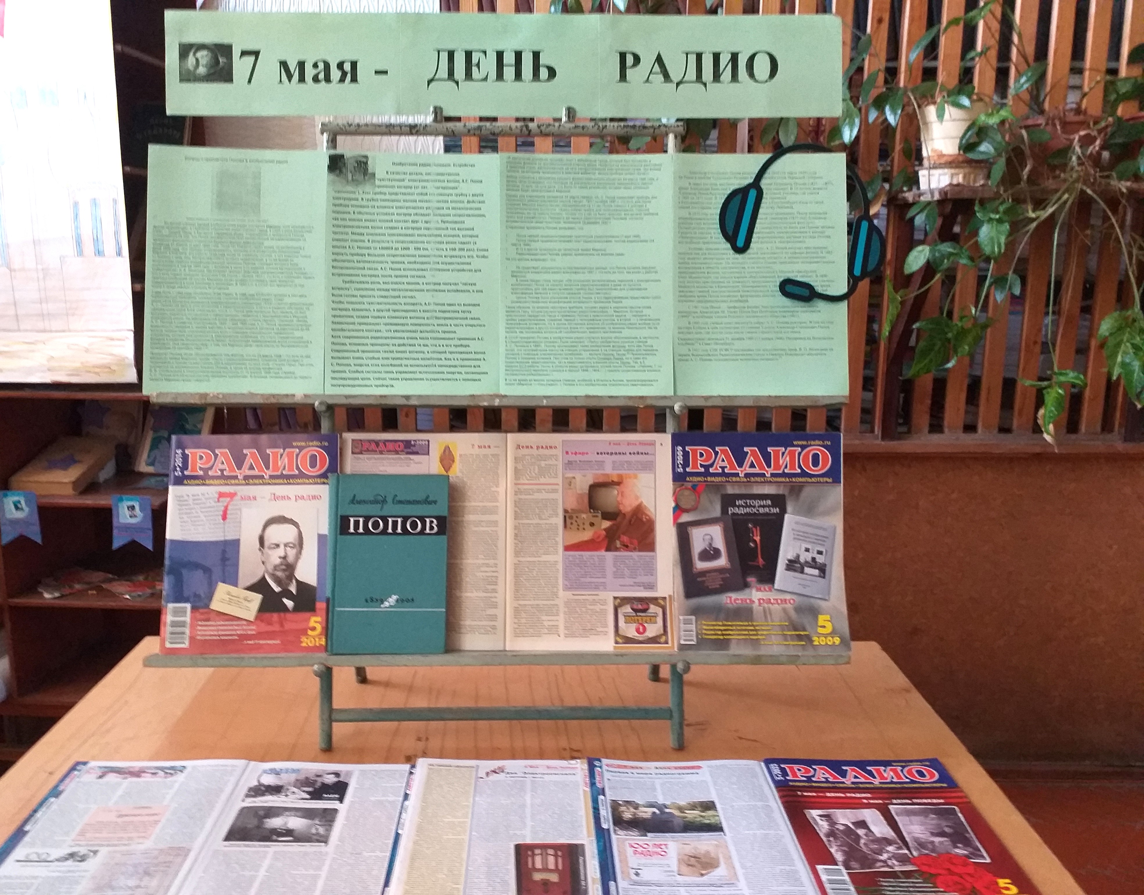 На выставке представлены книги и журналы о Дне радио и Александре Степановиче Попове.
