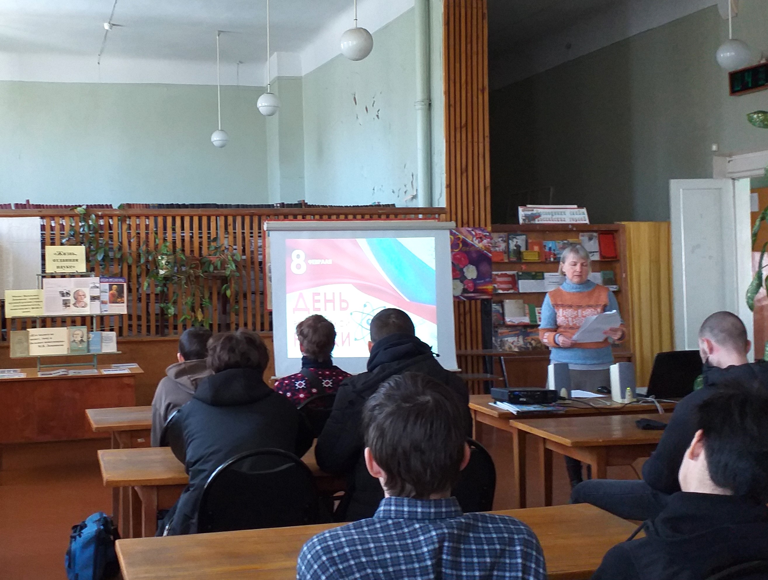 10 февраля  2026 года в библиотеке  Колледжа радиоэлектроники имени П.Н. Яблочкова для студентов групп 6301 (классный руководитель Елена Игоревна Левченко) и 1302 (классный руководитель Елена Викторовна Вахлиш) прошел познавательный час «Жизнь, отданная науке», посвященный жизни и деятельности выдающегося ученого М.В. Ломоносова, к 315 – летию со дня его рождения, в рамках Дня российской науки. Провела мероприятие библиотекарь Светлана Александровна Вьюгова.