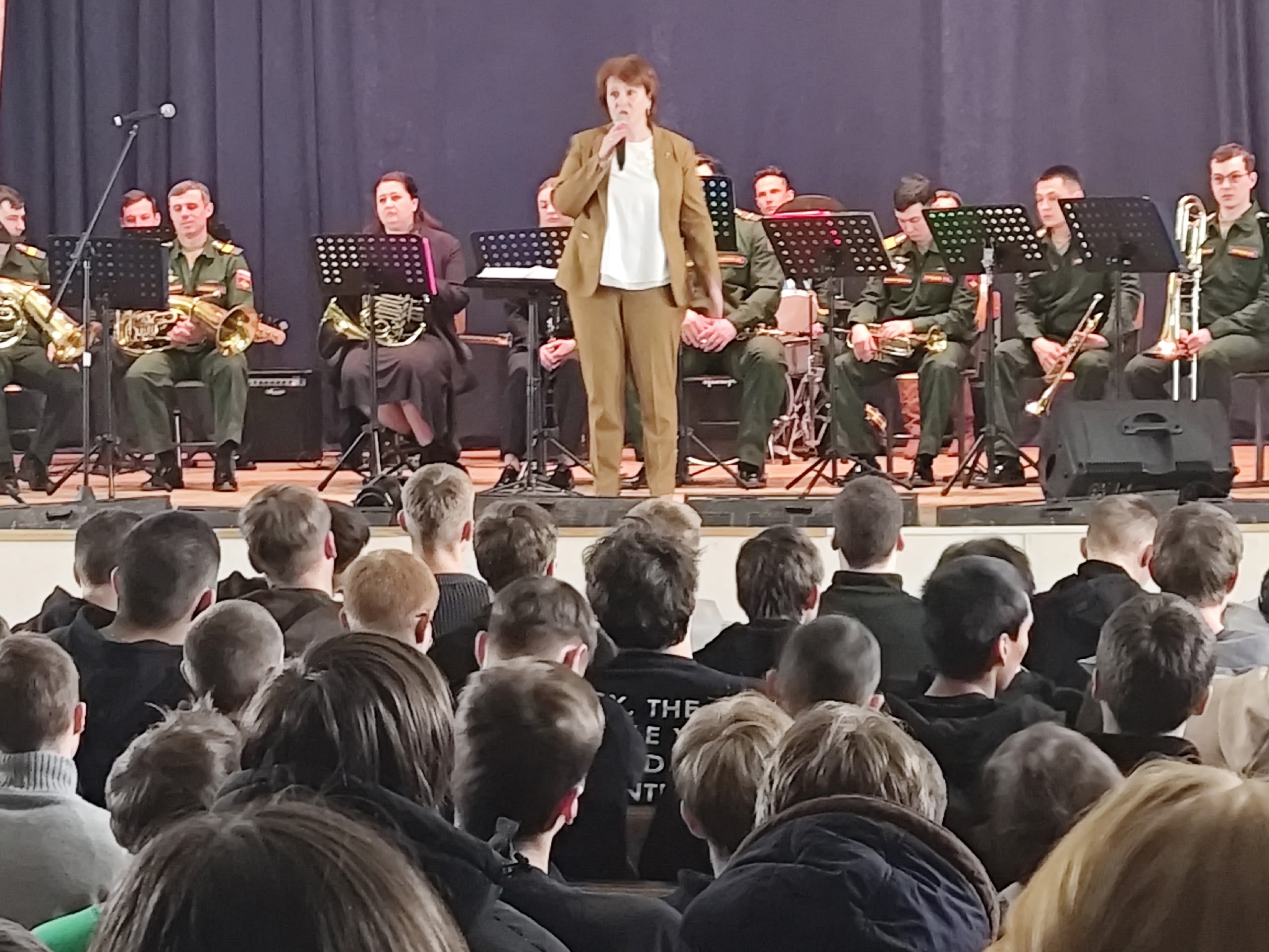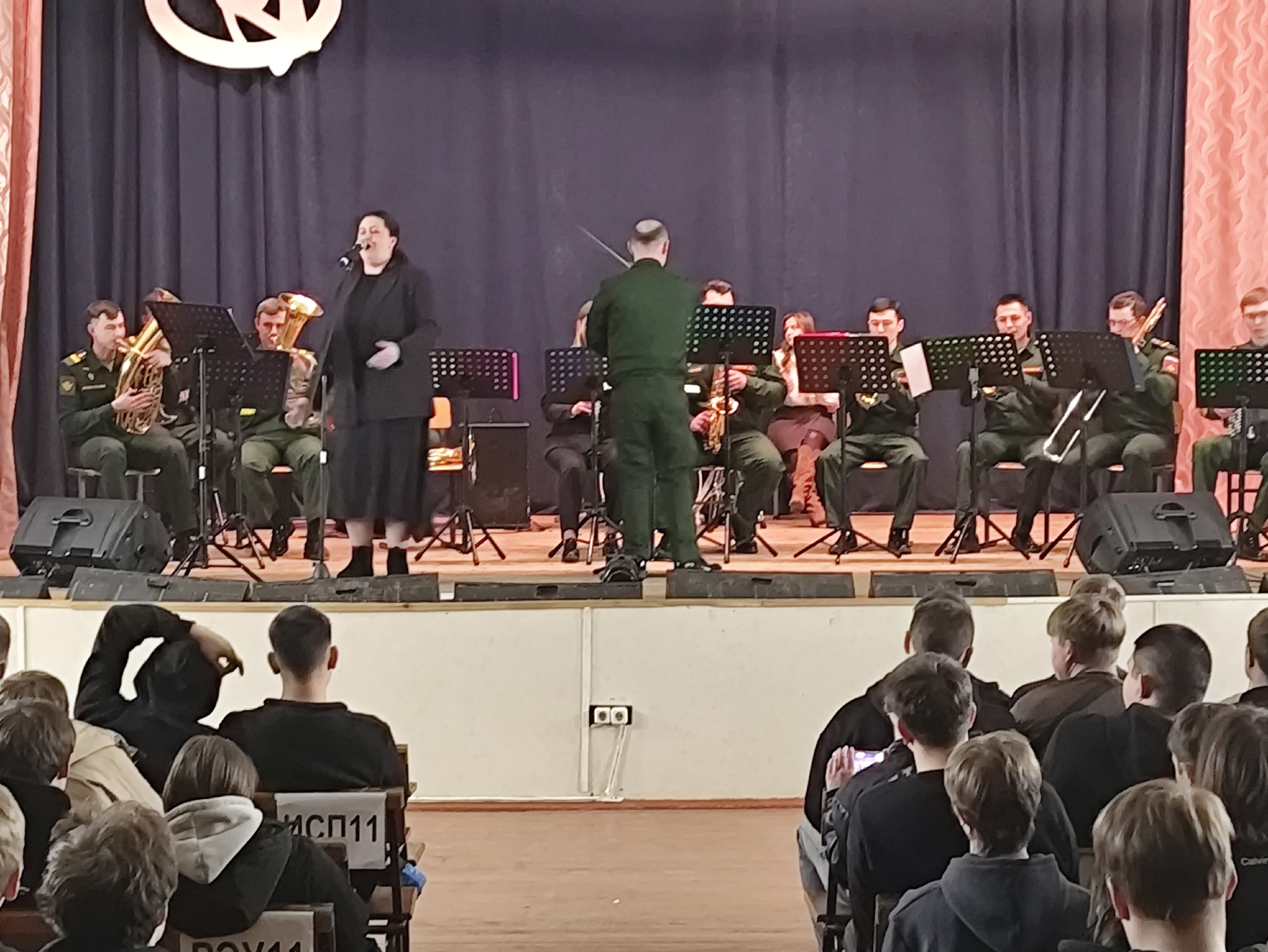 26 февраля 2026 года в большом актовом зале Колледжа радиоэлектроники имени П.Н.Яблочкова прошел концерт военного оркестра 69го Дома офицеров.
