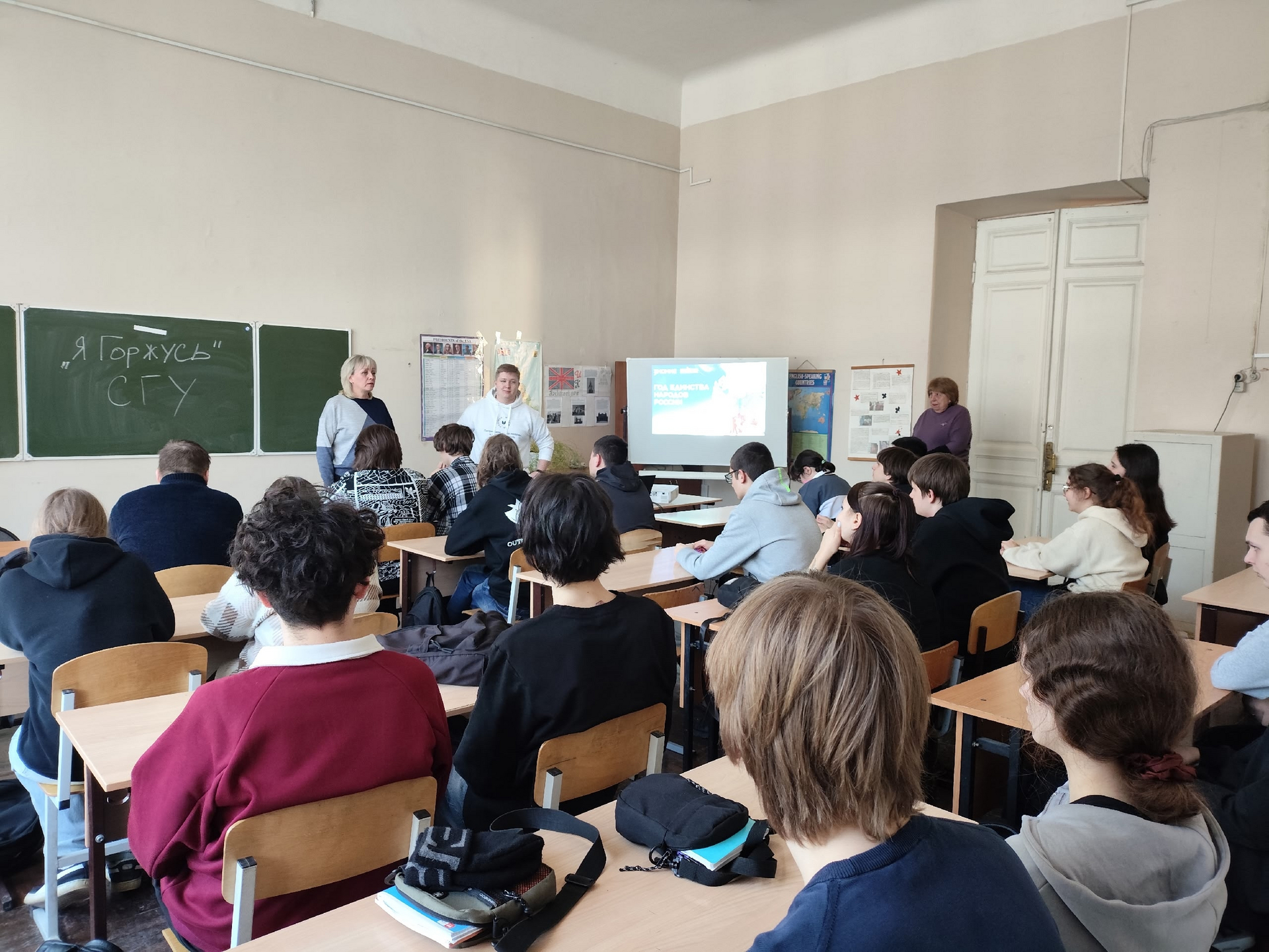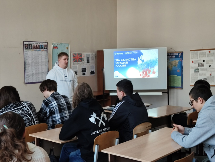 12 марта 2026 года для студентов групп 9261, 9262 Колледжа радиоэлектроники имени П. Н. Яблочкова сотрудник патриотического клуба «Я Горжусь» СГУ Осипов Федор провел квиз посвящённый Году единства народов России.
