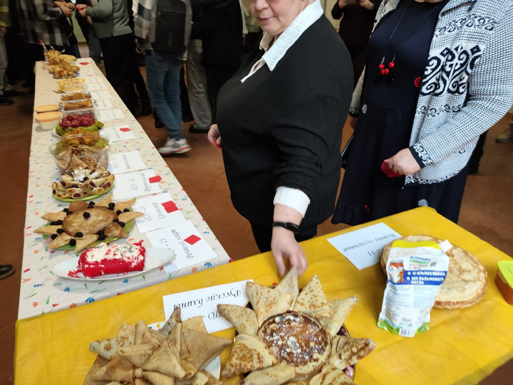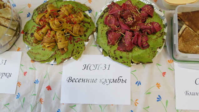 Одновременно проходил конкурс на самые аппетитные, румяные и креативно оформленные блины: студенты приносили свои шедевры, придумывали им интересные названия и представляли их на зрительское голосование. От некоторых групп приносили несколько вариантов подачи блинов по самым известным, или наоборот, секретным семейным рецептам. А все присутствующие отдавали свои голоса за самое понравившееся блюдо.