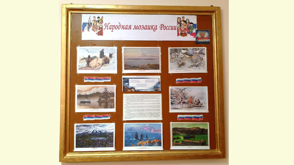 Первая экспозиция выставки-стенда знакомит читателей с Дальним Востоком. «Настоящий край земли русской», – так называли его переселенцы XIX века. Коренные народности Дальнего Востока – нанайцы, ульчи, коряки, ительмены и др., как и столетия назад, занимаются охотой, рыболовством, оленеводством, собирательством и бережно поддерживают национальные традиции своих предков.