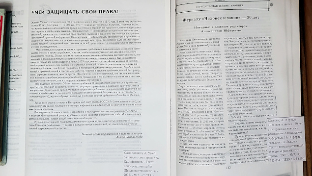 Издание публикует материалы, касающиеся защиты прав и законных интересов личности, разъяснения и комментарии специалистов к новым нормативным актам и законам. На страницах журнала регулярно выступают известные юристы, учёные, общественные деятели по актуальным вопросам политики государства в области законодательства. Девизом журнала стали слова «Умей защищать свои права».