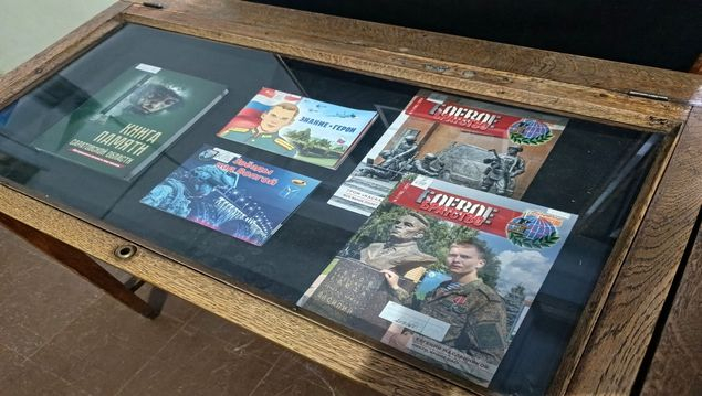 На выставке представлена новая литература о специальной военной операции на Украине, поступившая в библиотеку в начале 2026 года в дар от общественного объединения Саратовской области «Братья по оружию» («Боевое братство) и его руководителя Сергея Климентьевича Авезниязова.