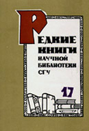 Очередной, семнадцатый выпуск серии "Редкие книги ЗНБ СГУ" содержит публикации и исследования неизвестных и малоизученных материалов XV - XX вв., хранящихся в отделе редких книг Зональной научной библиотеки имени В.А.Артисевич Саратовского государственного университета.